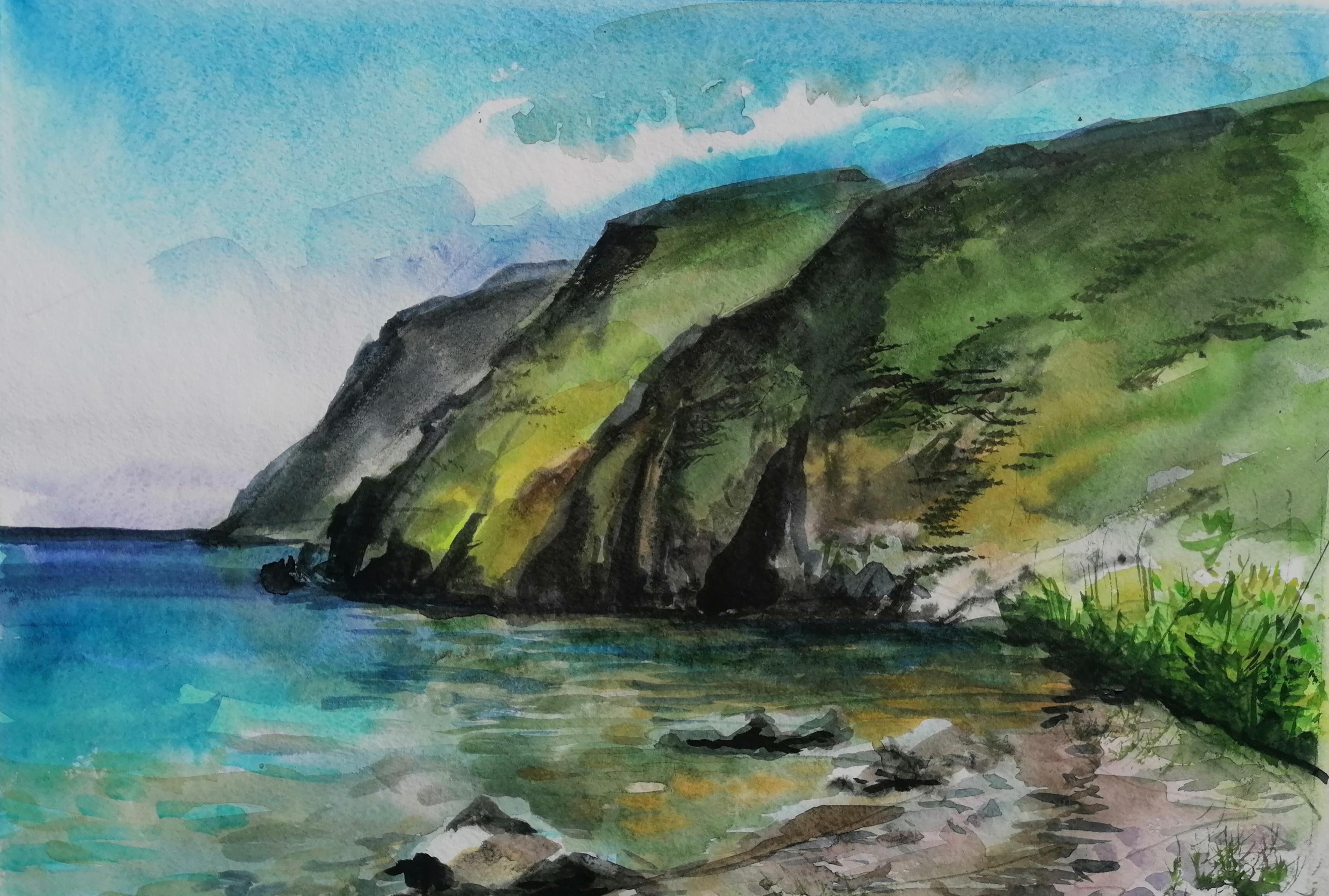Акварель «Байкал. Улан‑Нур» (2021), 25×35 см, бумага. Работа передаёт масштаб и дух Байкала: отвесные скальные уступы, спокойная гладь воды и ощущение открытого моря в самом сердце Сибири. Прозрачные слои краски создают глубину и отражения на поверхности озера, подчёркивая контраст между суровой скалой и ровной водной чашей. Картина станет выразительным акцентом для интерьеров в стиле эко, минимализм или морской кантри и интересна коллекционерам сибирской пейзажной живописи.
