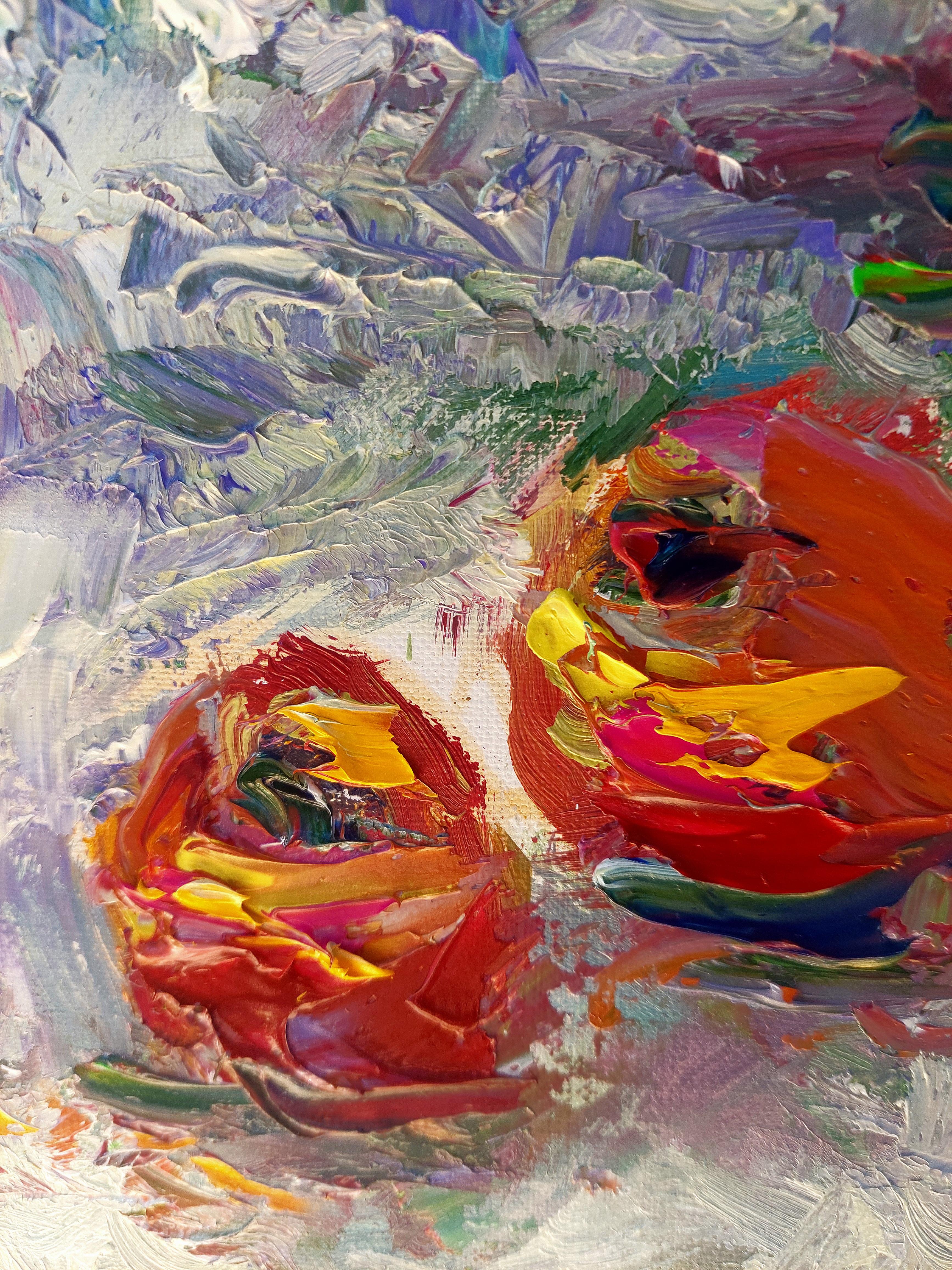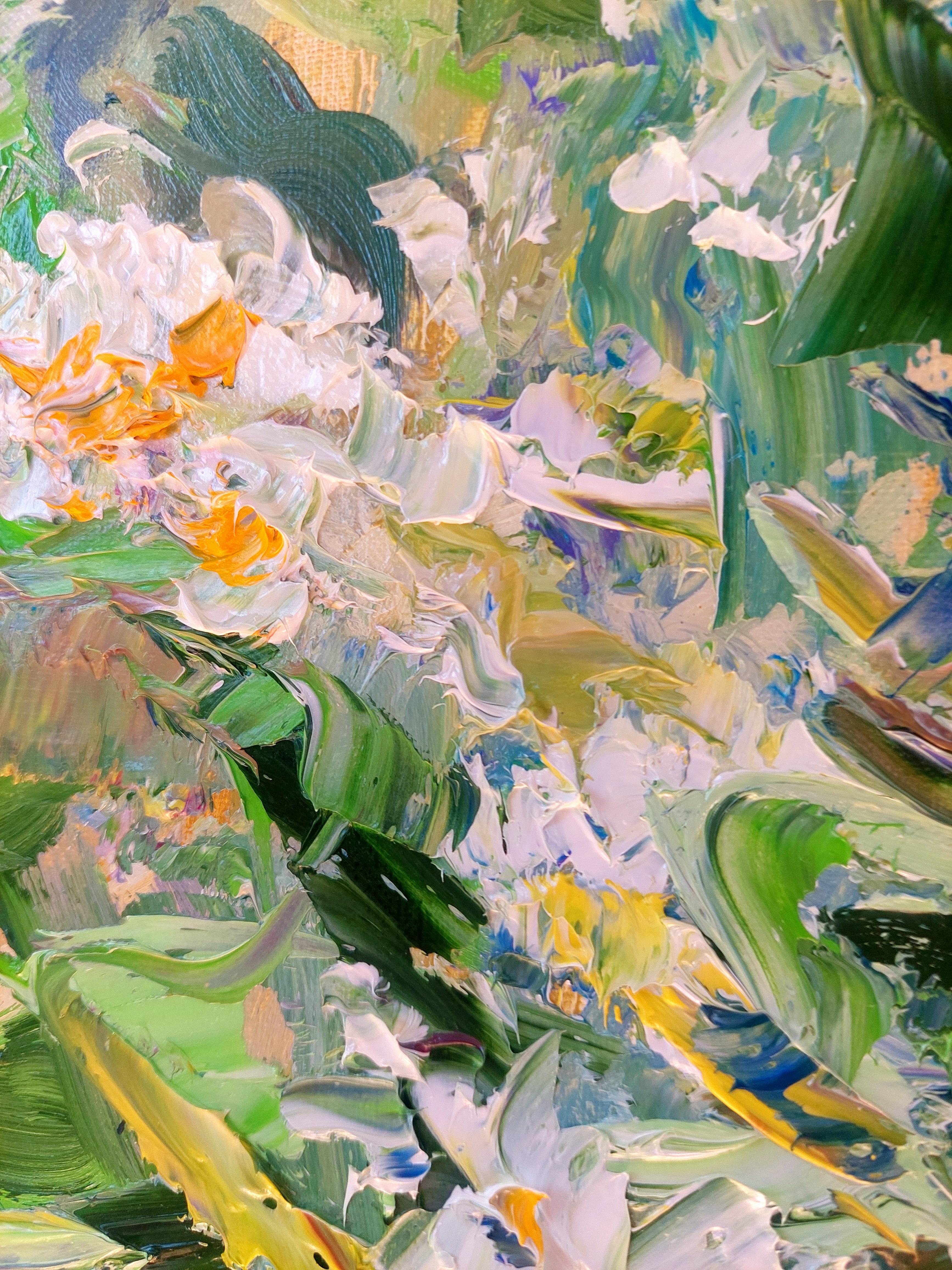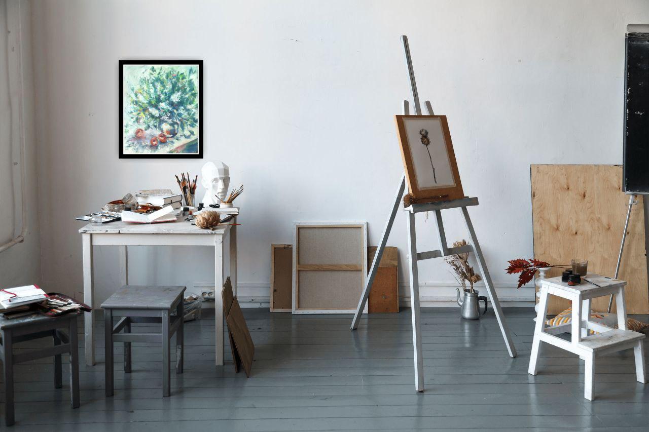 Пышный букет черёмухи рядом с тремя яблоками формирует композицию, полную свежести и светлого покоя. Художник использовал широкий живописный жест и плотные мазки, чтобы передать движение веток, текстуру лепестков и объём фруктов; светлая палитра и продуманная светотень подчёркивают атмосферу утреннего или ранне‑вечернего света. Работа отлично смотрится в кухонных и столовых интерьерах, в пространствах в стиле скандинавский минимализм, рустик или современная классика, и будет интересна коллекционерам натюрморта и интерьерной живописи.